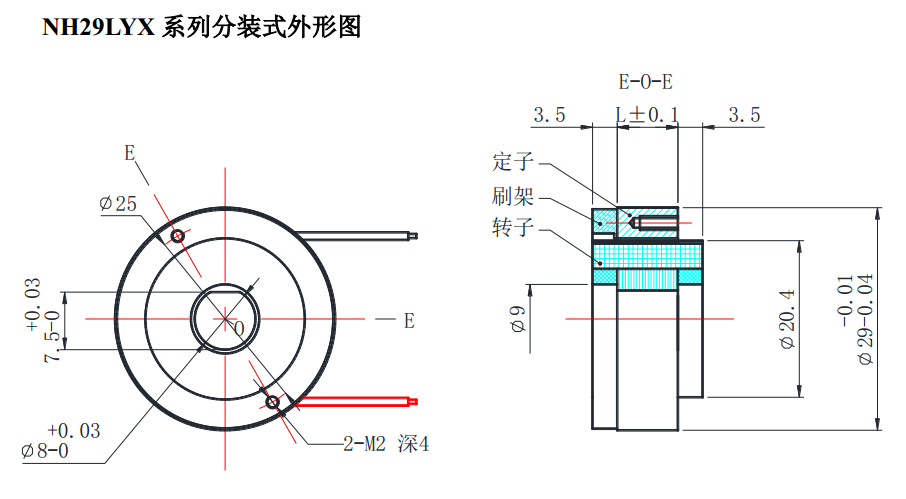 NH29LYX series of dc torque motor dimensions