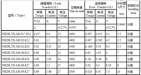NH29LYX series dc torque motor performance parameters