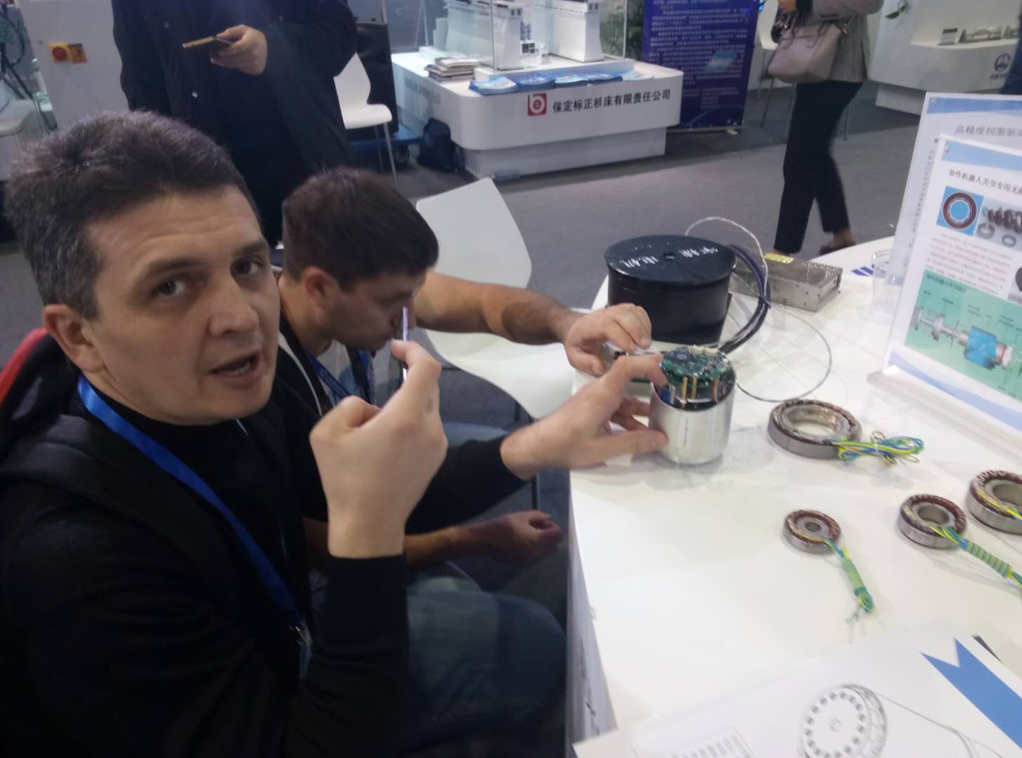 以“創(chuàng)新、智能、綠色”為主題的第19屆中國(guó)國(guó)際工業(yè)博覽會(huì)于2017.11.7-11日在上海國(guó)家會(huì)展中心舉行。河北省宇捷電機(jī)科技有限公司在4區(qū)河北省工業(yè)展區(qū)內(nèi)進(jìn)行了產(chǎn)品展示,據(jù)統(tǒng)計(jì)第19屆中國(guó)國(guó)際工業(yè)博覽會(huì)歷時(shí)5天、參展規(guī)模和專業(yè)觀眾數(shù)量均創(chuàng)歷史新高,據(jù)大數(shù)據(jù)監(jiān)測(cè)平臺(tái)實(shí)時(shí)數(shù)據(jù)顯示,截至11日中午12:30,本屆中國(guó)工博會(huì)共吸引境內(nèi)外專業(yè)觀眾超16萬(wàn)人次,較去年同期增長(zhǎng)近6.67%。河北省宇捷電機(jī)科技有限公司展臺(tái)前咨詢和觀看電機(jī)的人員絡(luò)繹不絕,尤其是其中的機(jī)器人專用無(wú)刷直驅(qū)電機(jī)TBSM系列正弦波無(wú)刷力矩電機(jī),可稱為此次參會(huì)的明星產(chǎn)品。